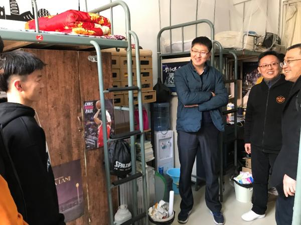 3月2日上午,学院党委书记朱伟,执行院长刘彦明,党委副书记卢毅以及本科生辅导员来到丁香、海棠宿舍区,实地看望返校学生并送达学院关怀,深入了解学生思想状况及学习生活情况、关切询问学生假期生活和返校情况,针对学生提出的问题及时进行解决,并叮嘱同学们遵守学校管理规定、注意个人健康和宿舍卫生。