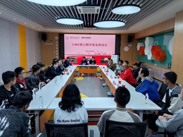2021年4月17日下午,通信工程学院1-861爱心助学基金座谈会在大学生活动中心会议室举行。杨忠等一行7名1-861班校友代表参加了座谈会,并邀请到一位特殊的嘉宾——1-861班辅导员王跃利老师,同时参与本次座谈会还有学院党委副书记沈强、本科生辅导员黄云、研究生兼职辅导员徐文博,座谈会由学院党委副书记沈强主持。