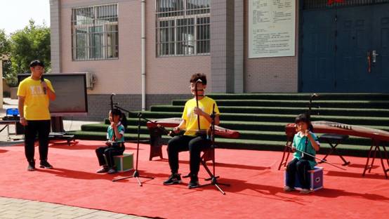 汇报演出阶段,参与音乐教学的9名小朋友与他们的“小老师们”默契配合,展示学习成果,进行了二胡拉弓练习,弹奏了琵琶《洋娃娃与小熊跳舞》,古筝《笑傲江湖》《上学歌》、葫芦丝《国旗国旗真美丽》等优美曲目,充分展现了孩子们对音乐的热爱。