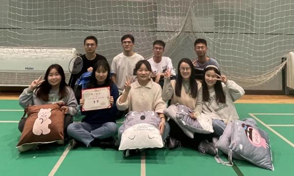 五个小时,四轮比赛,是球技与耐力的较量,心态与配合的考验。球场上局势瞬息万变,比分常有焦灼,选手们不断调整,把控节奏,变换招式,平抽挡斜劈杀压线得分不在话下,接杀球吊后场逆风翻盘精彩异常,一拍后场接着软放小球,巧取制胜岂不乐哉。精彩的瞬间伴随着场边的欢呼,暂时的失利也有同学们暖心的鼓励,友谊第一,比赛第二,胜败常有,坚持就是胜利。经过激烈的角逐,最终获得第一名的是“数统巅峰队”,获得第二名的是“数统小呆瓜队”,获得第三名的是“随便打打队”。