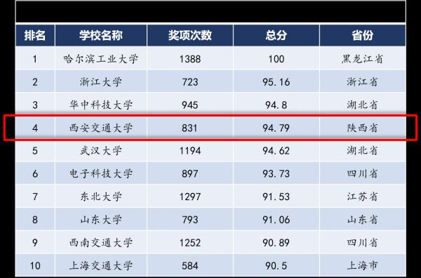 2017-2021年全国高校学科竞赛排行榜揭晓 西安交大位居全国第四