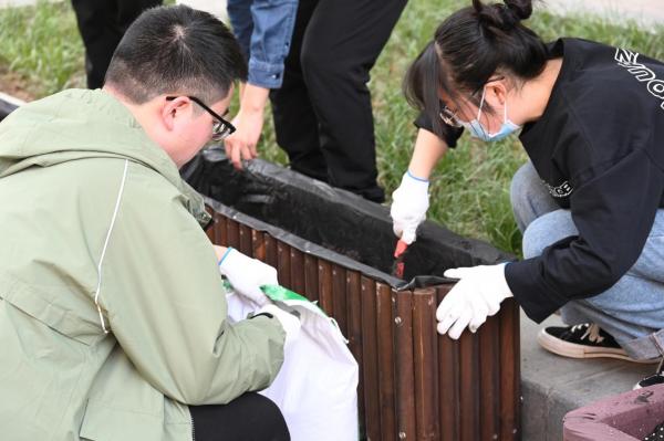 活动开始前,书院辅导员雷泽宇老师讲解了本次活动的举办宗旨和活动意义,详细讲述了活动步骤和园艺知识。各组负责人领取了本组所需物资后便立即到负责区域,先整理了花坛旁停放的自行车,随后各组成员齐心协力、相互配合,布置花架、撒土松土、打水灌溉、播种浇水、插标语牌,每位成员都充满干劲、乐在其中,有条不紊。期间不时有路过的同学被吸引而来,他们停下匆匆的脚步,向参与活动的同学询问花卉的名称亦或一起动手,感受劳动的乐趣。
