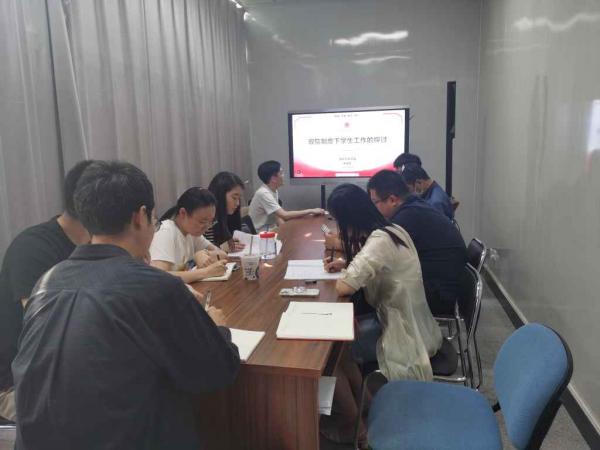 随后,沈强指出,在双院协同育人模式下要实现1+1≥1的育人效果,需要各位辅导员以学生为中心,多思多行,把解决学生实际问题放在育人工作的首位,以此实现双院协同育人模式下学生工作的最终成效。关于红色文化育人方面,沈强强调,要结合通院红色育人资源,创新红色育人形式,拓宽红色育人路径,让红色文化融入学生血液。