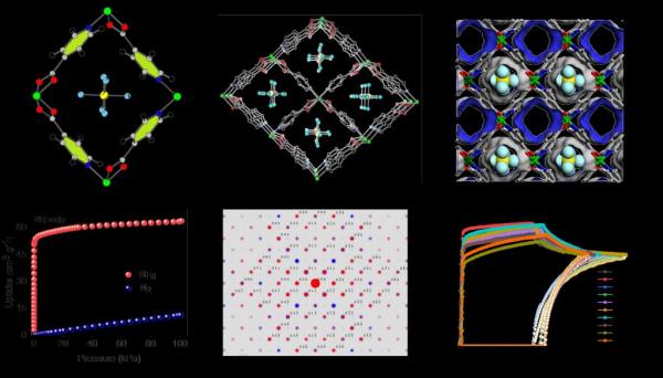针对上述问题,西安交通大学化工学院杨庆远教授课题组开发了系列具有不同孔结构的金属-有机框架(MOF)材料,用于六氟化硫的捕获。研究表明,具有一维纳米孔道且孔尺寸与SF6分子动力学直径相近的MOF材料具有良好的六氟化硫捕获效果。MOF材料Ni(ina)2的孔径为0.6 nm,和SF6的分子大小(0.52 nm)非常匹配,因此该材料表现出优良的六氟化硫捕获效果,Ni(ina)2在298K(0.1 bar)下的SF6吸附量为2.39 mmol/g,其SF6/N2分离比高达375。理论模拟计算和单晶结构解析表明Ni(ina)2框架和六氟化硫分子之间存在较强的作用力,可以从低浓度SF6-N2混合气中选择性地捕获六氟化硫分子。动态突破实验也进一步表明Ni(ina)2具有良好的SF6/N2实际分离效果,该工作为工业上含氟电子气体的捕获提供了思路。