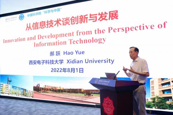 郝跃院士为留学生们作题为《从信息技术谈创新与发展》的学术讲座。郝跃院士讲解了信息技术的作用、信息科学的定义、战略地位和发展趋势,阐述了微电子技术领域的发展历程、技术延伸和未来方向,介绍了西电在第三代半导体芯片领域取得的重大研究成果和技术突破。郝跃院士给未来有志于从事科学研究的留学生们提出了殷切希望,鼓励留学生们在实现创新发展的路上要有正确的目标和方向,持之以恒筑牢理论根基,不断求知探索,找到适合自己的学习和科研平台,选定方向努力做到极致,坚信处处有奇迹。