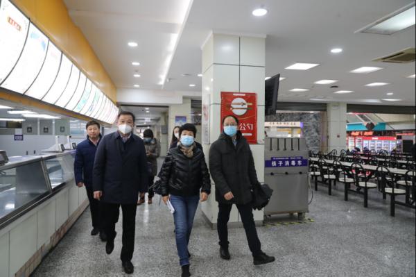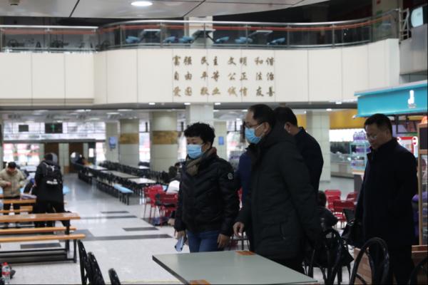 陈乃霞一行先后检查了校医院、保卫处、学生宿舍、食堂等处,详细了解学校疫情防控、公共卫生、食品安全、校园安全等工作情况及教学安排等情况,实地查看设施运行维护及学生饮食、住宿、用水、用电和校园安全稳定、消防及责任监管情况。