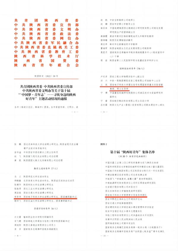 本次入选的好青年个人和集体,集中展示了当代陕西青年苦干实干、奋斗奋进的精神品格和价值追求,是广大青少年学习的榜样。西电共青团将以此次“陕西好青年”评选工作为契机,持续发挥好榜样青年(集体) 的示范引领作用,引导广大团员青年牢记初心使命、坚定理想信念、练就过硬本领,不断为奋进中国式现代化新征程、实现中华民族伟大复兴而团结奋斗。