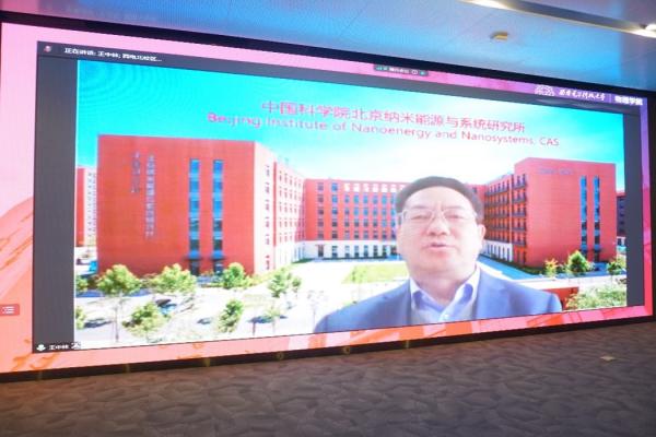 王中林院士在致辞中回顾了自己在西电学习、科研的难忘经历,表示在西电打下扎实的数理基础对自己后来的科研起到极其重要的作用。他谈到,扎实的理科是强大工科的基础,只有加强基础研究才能培养原创成果。西电物理学科的长足发展对于学校在加强基础研究和提升原创能力方面意义重大,有利于加快推动跨学科研究和新兴交叉学科建设。希望物理学院今后能够瞄准未来学科发展,瞄准未来人才培养阵地,在核心技术领域实现突破,培养出更多优秀的科研人才。