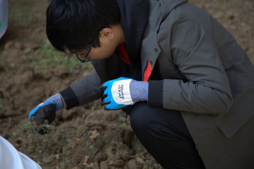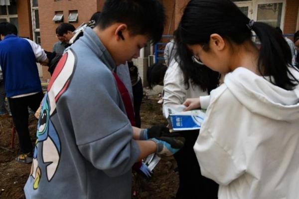 在种植前,同学们分成园艺设计组、翻土种植组和农药杀虫剂配制组三个小组,明确分工,团结协作。在培养团队合作能力的同时,体验了种植的乐趣和辛劳,增进了沟通能力,提高了种植效率。