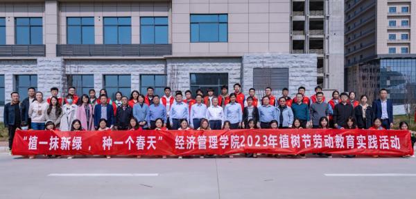 为迎接全国第46个植树节,3月10日,经济管理学院在长安校区宏观经济大楼前开展植树节劳动教育实践活动。校长郭立宏、校党委副书记张清、副校长张远军、吴振磊,国内处负责人和经管学院师生代表80余人参加。