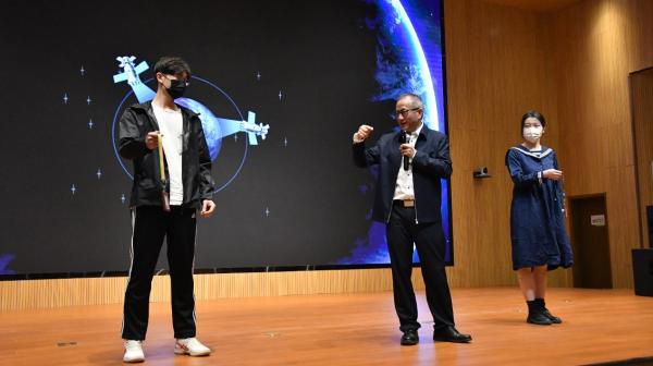本次讲座过程中也包含现场提问和互动的环节。在提问环节中,积极参加的同学,还获得了研究院准备的“航天卫星”合集明信片等精美礼品;在互动环节中,苏继东研究员邀请现场同学一起参加充满趣味性的实验活动——模拟卫星绕地球实验,通过简单的模拟实验让同学们懂得卫星运动的原理,激发了同学们的科研兴趣。
