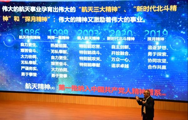 研究员从宇宙起源讲起,引导同学们反思如何过好这一生,什么是人生中最重要的事情;将高屋建瓴的航天知识讲授的浅显易懂,让同学们体会何为大道至简;从整体观到局部观,一层层分解读书、学习的方法;最后,研究员呼吁新时代大学生要传承“三大航天精神”“新时代北斗精神”和“探月精神”。并鼓励同学们要有自己的“航天梦”;提倡同学们去做学问,在做学问过程中,要学会思考着问问题,找到接近真理的思维去问问题。