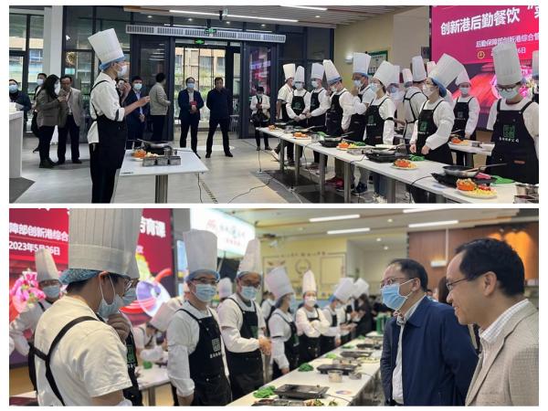 在创新港朗清苑食堂,柴渭观摩了厨艺烹饪劳育课。在学习了粤菜理论知识后,同学们在食堂师傅的指导下,从刀工、配菜、烹饪、调味全过程学习了菠萝咕咾肉和荷塘月色两道粤菜的做法。柴渭认真观摩课堂教学,与学生们交流学习心得,征询意见建议。