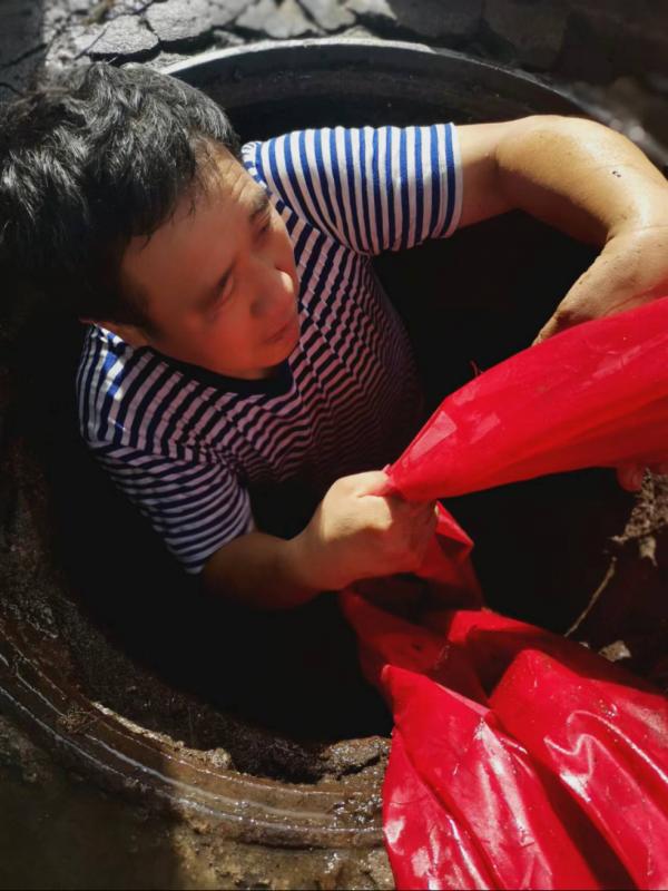除了巡查外,穿好工作服,靠绳索下降到窨井内,用铲子、箩筐清除淤泥和垃圾……这样的动作,是杨师傅的日常。当清掏完一个窨井,杨师傅返回地面时,已是全身污泥、满身臭味,路人会不自觉地远远避开。“我都习惯了,身上脏怕啥,洗洗就净了,人活一世,心里干净才是要紧事。”