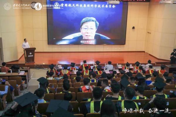 本科毕业生王晓琪和研究生毕业生乔良全作为学生代表发言。王晓琪谈到:“回望在学院的四年求学生涯,我们在航天金课系列报告会上与院士总师共同仰望星辰大海,在航天筑梦之旅的社会实践中了解社情民情,在航天文化节丰富多彩的活动中体悟航天精神,未来我们会继续用航天精神点亮梦想,再把梦想绘入浩瀚星河。”