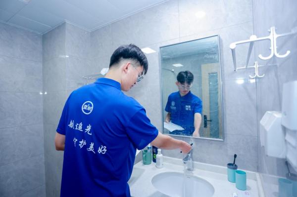在南区宿舍入户查验项目中,“星航班”学员以班级为单位划分查验区域,各班学员在物业处领取房间查验问题巡查表,协作分工开展入户查验。作为南区北院的第一批入住者,学员们分批对宿舍水、电、设备等基本生活设施进行仔细检查,发现问题并及时记录。实践结束后,各班学员将查验情况及时报告,学校相关部门第一时间检修落实,共同为更多即将入住的研究生新生提供更加安全、可靠、舒适的宿舍环境。