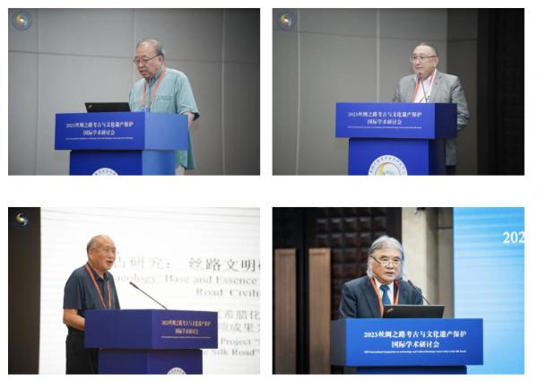 中国文物学会世界遗产研究会主任委员、国际古迹遗址理事会(ICOMOS)前副主席郭旃,哈萨克斯坦科学院院士、考古研究所原所长保尔詹·白塔纳耶夫,南开大学历史学院杨巨平,丝绸之路考古合作研究中心首席科学家王建新分别作了题为“探讨国际语境中的丝绸之路‘长安-天山廊道路网’及对遗产的认知、保存、保护与弘扬”“奇姆肯特发现的金质盘形饰”“丝路考古是丝路文明研究的基础——以国家社科基金重大项目<希腊化文明与丝绸之路>结项成果为例”“东西交流与丝绸之路遗产”的主旨发言。
