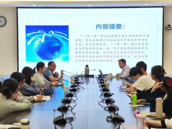 报告会上,陈阳教授从“一带一路”倡议中所凝聚的中国文化理想和中国智慧谈起,讲述了“一带一路”建设的相关理念与中国文化哲学的内在联系,并分析了其理论内涵在近年中国电影中的丰富呈现,从而引出对中国电影理论和创作实践的讨论。