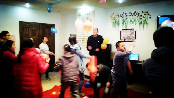 12月31日,希望阵营的志愿者们来到了位于西安新城区的“阳光家园”特教机构,和那里的老师和孩子们一起度过了2014年的最后一天,提前庆祝2015年的到来。