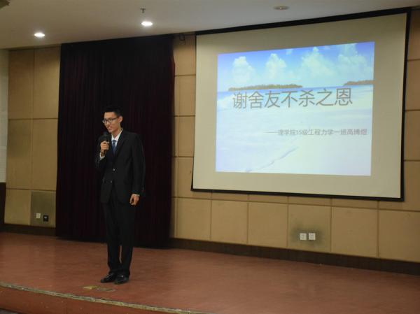 比赛以选手自制视频及现场演讲为表现形式具体开展,每位选手总限时5分钟。新颖的形式为本次比赛锦上添花,得到了很好的反响。比赛中,即将离开渭水校区的大三同学对母校的依恋情感,多姿多彩的大学生活,让人垂涎三尺的特色小吃,还有那别有深意的“谢舍友不杀之恩”演说等引发现场观众的阵阵掌声,整场比赛气氛热烈。选手演讲结束后,评委老师从多方面对选手们进行了专业点评。