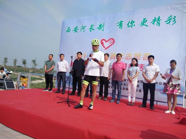 本次活动启动仪式上,长安大学骑行社副主席雷雄耀代表参加活动的六支骑行队伍宣誓,在宣誓中他表达了对低碳的出行的方式与“西安河长制”活动的支持。随后长安大学首队发车,并进行了环湖一周的骑行。环湖结束后各校骑友合影留念。