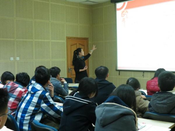 2014年12月8日晚19时,校团委组织我校各学院文艺骨干及大学生艺术团部分干事在渭水校区长安文化艺术中心培训室举行团委书记讲团课活动。校团委社团与文体部副主任张红老师为本次团课主讲,为大家讲解如何办好一场晚会。