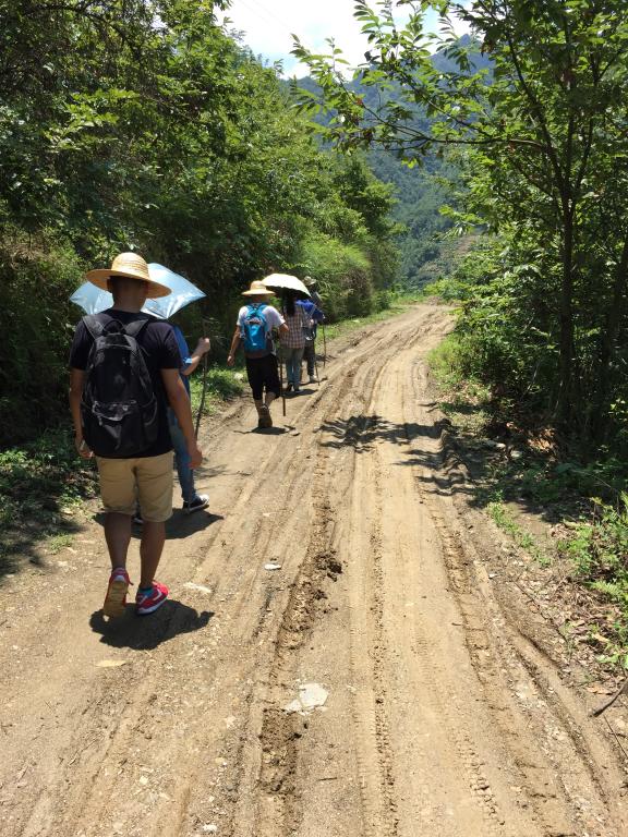 实践队成员按计划抵达城管镇,进行地质情况实地调查。上午八点钟同学们吃完早饭准时集合,经过前期的勘察并且本着安全第一的的原则,实践队成员选择了一座地质特征明显,易于攀爬,危险性较低的的山坡进行实地考察。