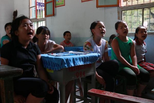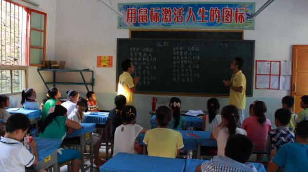在征求了同学们的意见后,我们采取了他们的建议,对第四天及以后的教学计划稍作调整,延长下午辅导的时间至5点半。窗外,烈日炎炎,窗内,闷热无比,但这并不影响同学们积极性,他们依旧认真学习,用心完成假期作业,遇到不会的问题积极向志愿者提问,志愿者们也一一详细解答并进行了课外拓展。授人以鱼,不如授之以渔——不错,我们教给他们的知识毕竟是有限的,培养他们对学习的兴趣,使他们养成自主学习的习惯才是最重要的。16 :30,假期作业辅导结束,,志愿者开始教小朋友们唱歌,他们认真学习,那稚嫩的声音萦绕在志愿者耳边,无不令人动容,歌声回荡在校园里,经久不息。