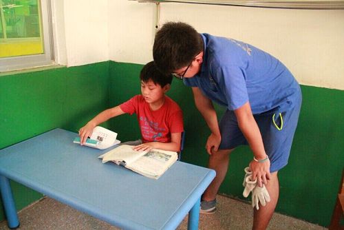 上午8点左右,所有志愿者已经各就各位,准备开始自己新的志愿实践。青少年是祖国的希望,支教组的同学丝毫未松懈对学生的各方面辅导,从暑期作业的辅导到常用知识的普及,在短暂的时间里,志愿者已经与同学建立起深厚的感情。支农组的同学伴着清晨的露珠到达支农地点,戴上手套,整理就绪,开始务农。套袋组的志愿者技术娴熟,扣袋迅速,蹲站相宜,在最短的时间里完成最大的任务量。锄草组的志愿者调准角度,拉推得当,将灯塔小学周围的杂草旋风式清理干净。