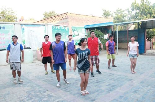 志愿者正排练汇报演出舞蹈《雷人舞》