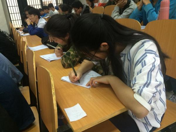 认真答题的同学