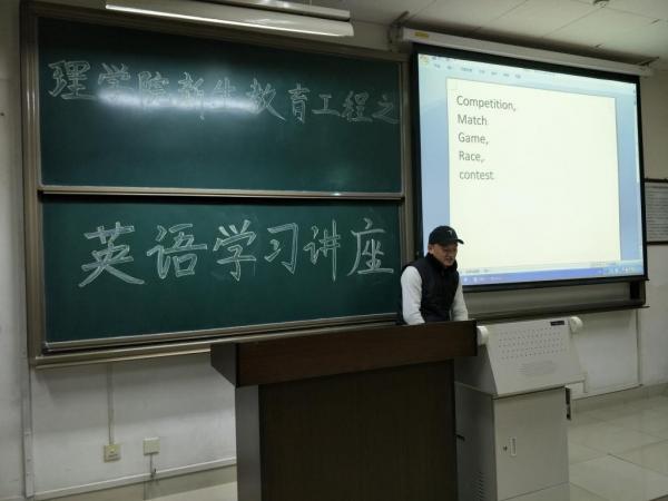 为增强同学们学习英语的兴趣,提高英语学习的效率。2017年11月14日19:00,理学院联合英度英语培训机构在WM1213举行新生教育工程之英语学习讲座,理学院大一全体同学及大二、大三部分同学参加讲座,英度英语教学讲师田疆老师担任主讲人。