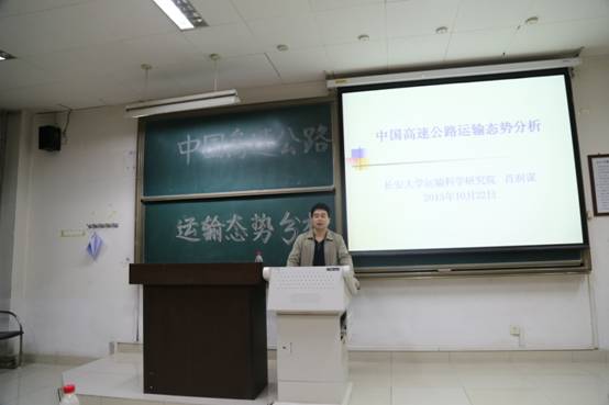 2015年10月22日晚7:00,我院肖润谋教授在明远教学楼1213教室作《中国高速公路运输态势分析》学术讲座。讲座由我院学工办倪凤英老师主持,辅导员赵士洋及2013级汽车运用工程专业学生参加讲座。