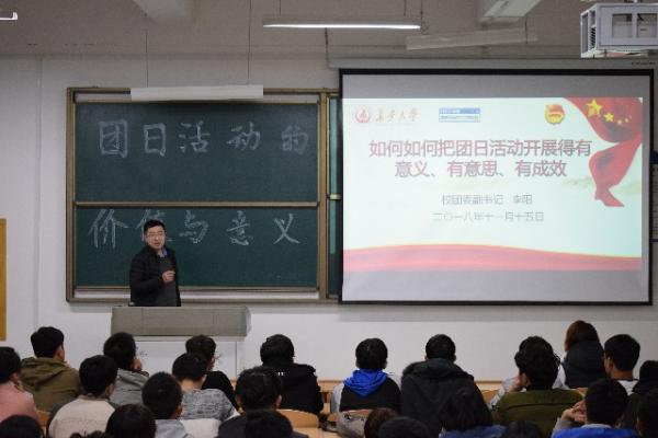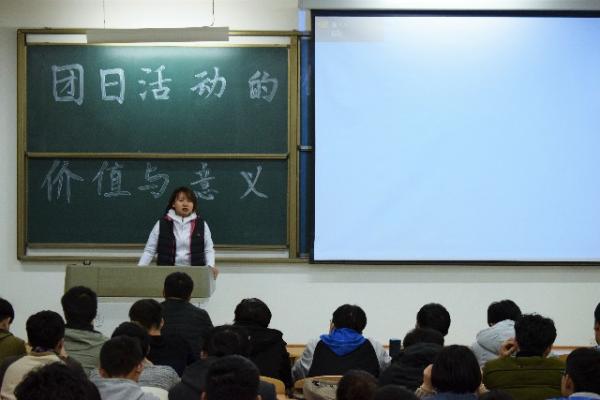 培训会上,李阳老师首先指出新时期共青团的工作任务、工作方向,切实做好“两个提高一个扩大”:提高团的吸引力和凝聚力,扩大团的工作有效覆盖面。在具体工作中,李老师讲到各团支书是共青团最基层的组织,各团支部书记要明确团的核心价值观是服务,以基层团支部建设为工作抓手 ,切实做好团联系青年、当好桥梁的作用。随后,李阳老师从什么是团日活动,为什么要开展团日活动,各高校目前团日活动开展的现状和如何开展好团日活动四个方面进行讲解,李老师讲座深入浅出、严肃活泼,和学生热烈互动,赢得了现场阵阵掌声。