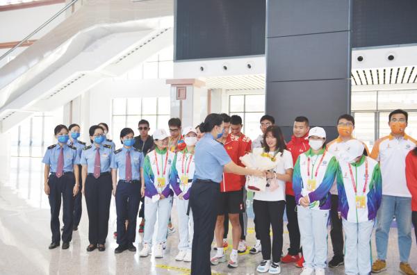 为服务好“十四运”运动员离汉返程,汉中车务段积极与执委会对接,车务段团委提前发布“招募令”,组织休班团员青年与市志愿者协会成立联合志愿服务团队,提前安排做好接站、专人引导、扫码测温、专区候车等服务。同时,还为离开汉中的“十四运”运动员送上了寓意美好的鲜花和真挚的祝福。