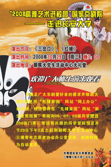 "2008高雅艺术进校园'国家京剧院走进我校将于10月29日晚上演