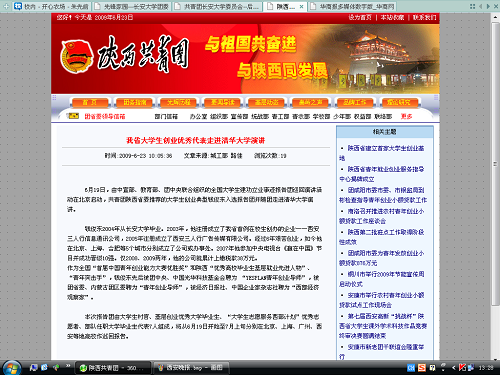 陕西共青团报道我校毕业生钱俊东前往清华大学作报告