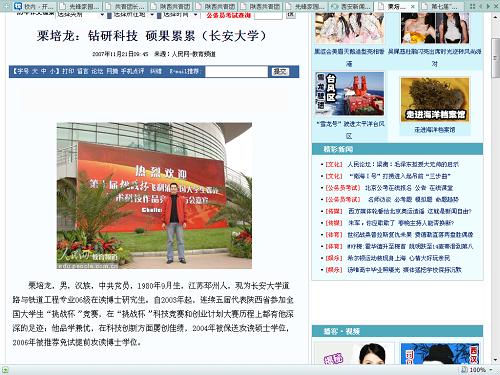 人民网报道我校公路学院博士生栗培龙先进事迹