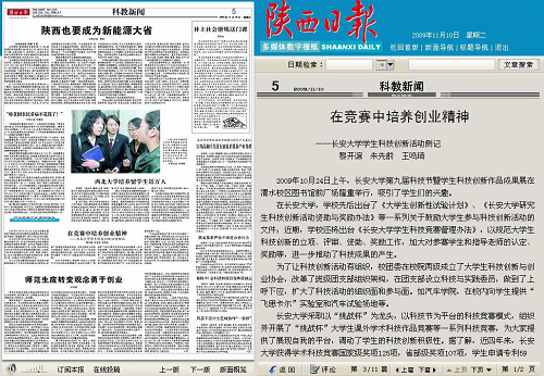 陕西日报11月10日在科技新闻版面报道了我校科技创新工作,以下是截图。