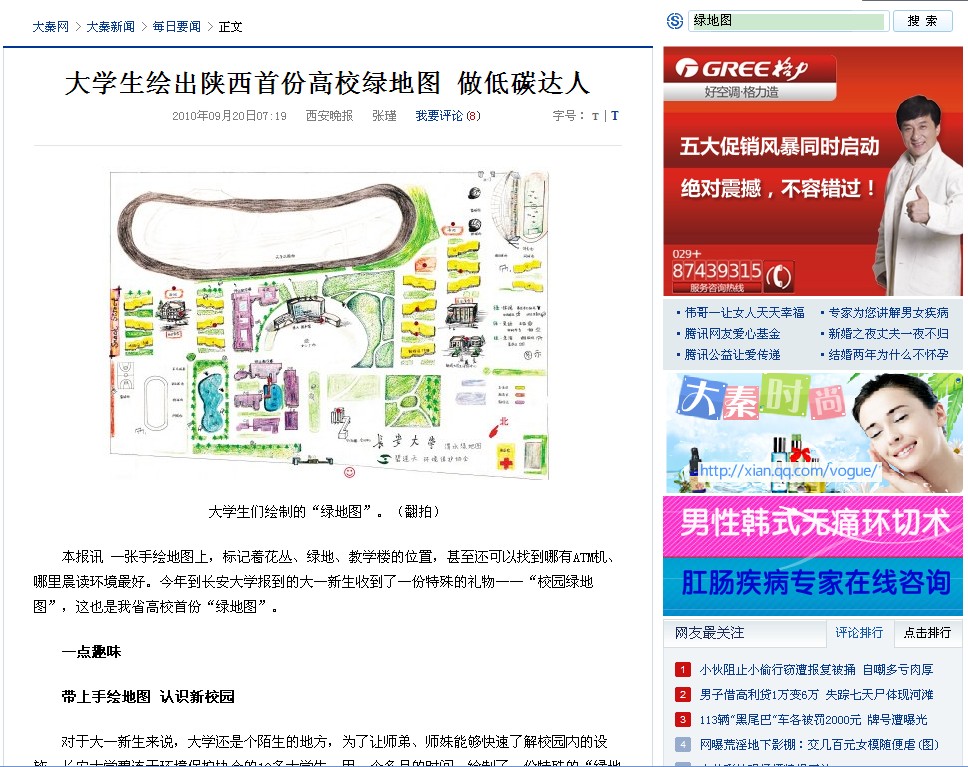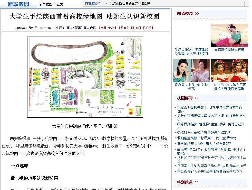 大秦网、网易新闻中心、新华校园网、天津网、西安新闻网、和谐西部网、中国日报网、西安晚报等诸多媒体关注我校“绿地图”