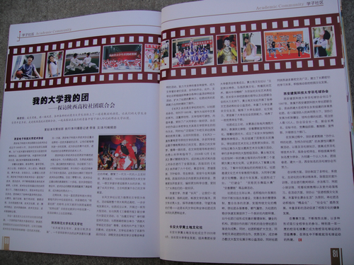 在《陕西教育观察》2010年10月刊上刊登的题为《我的大学我的团——探访高校联合会》一文中,我们长安大学黄土地文化社有幸与西安电子科技大学武术协会、陕西师范大学长风文学社、西安建筑科技大学羽毛球协会共同作为陕西高校社团的典范被刊载。能够获得如此殊荣着实与我们的努力分不开。