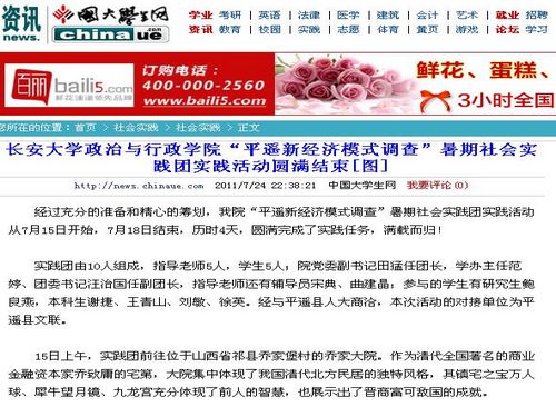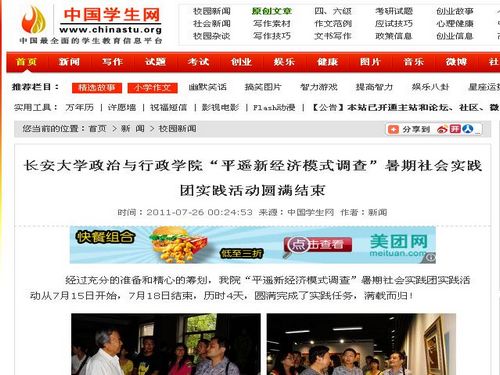 政治学院:中国学生网等多家媒体报道我院“平遥新经济模式调查”暑期社会实践团实践活动