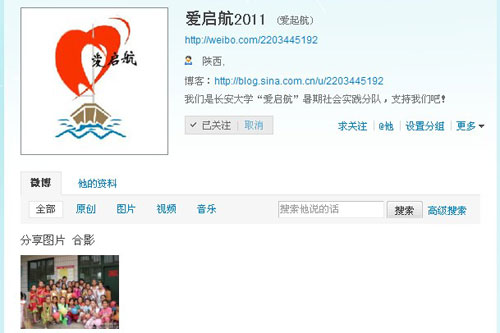 在中国共产党成立90周年、“十二五”规划开局之年以及长安大学建校六十周年之际,长安大学理学院深入贯彻团中央等组织精神,于2011年5月组建了“爱启航”暑期社会实践队,于2011年7月7日至7月13日开展了主题为“关爱留守妇女儿童,我们在路上”的暑期社会实践活动,实践队由11人组成,理学院团委书记汤颖颖作指导老师,本次实践活动通过中青微博和新浪微博进行了全程报道(微博帐号为:aiqihang2011@sina.com)。