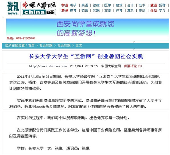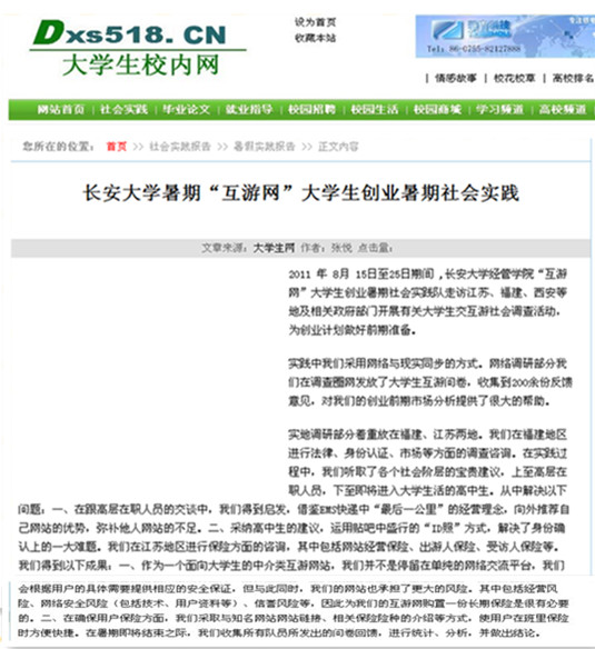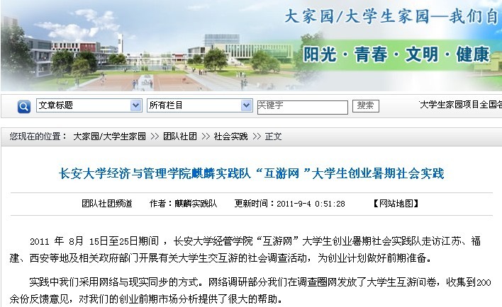 2011年8月15日,长安大学经管学院麒麟暑期社会实践队关于建立大学生互游网络平台的暑期社会实践顺利展开。
