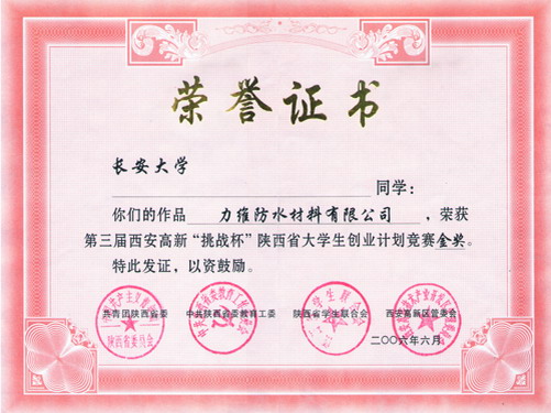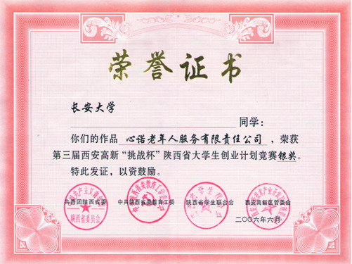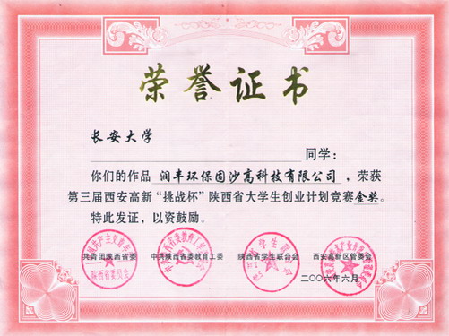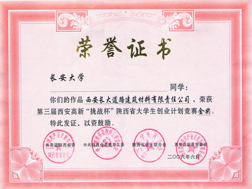 2006年6月,在第三届西安高新“挑战杯”陕西省大学生创业计划竞赛中,我校5件作品获得金奖,4件作品获得银奖,3件作品获得铜奖,同时,我校团体总分在参赛的26所学校中名列第二名,捧得“优胜杯”。