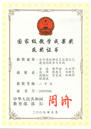 合并高校新校区校园文化建设的探索与实践获国家级教学成果奖二等奖