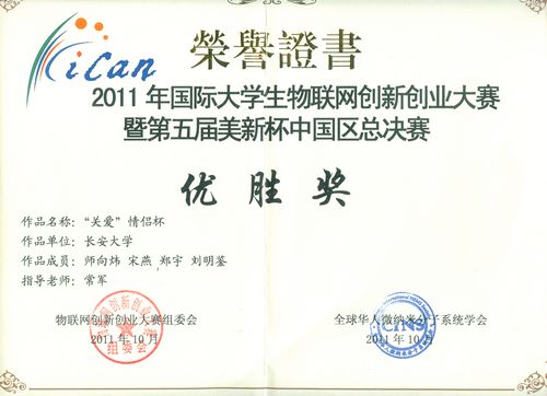 我校一团队荣获2011年国际大学生物联网创新创业大赛暨第五届美新杯中国区总决赛优胜奖
