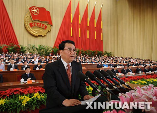6月10日,中国共产主义青年团第十六次全国代表大会在北京人民大会堂开幕。中共中央政治局常委李长春代表党中央致祝词。新华社记者李学仁摄