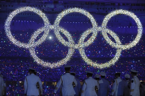 张艺谋说,他希望用梦幻般的五环,让所有人记住奥运会第一次来到中国的这一天。