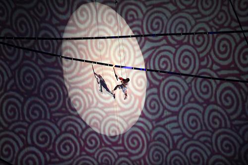 本届奥运会开幕式最大的悬念终于揭晓。李宁举着火炬,在钢索牵引下,如太空行走般沿鸟巢边缘奔跑。与此同时,一幅中国式画卷沿“空中跑道”徐徐展开,画卷上依次呈现出奥运圣火在各地传递的动态影像。当画卷完全展开